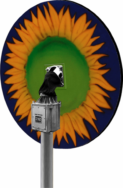 This is made possible by the brand new two-axis-rotor SOLAR-TRACKER using a big mirror. At this sun deflection system the reflection of the mirror (up to 5.5 m2 big) is directed automatically on the wished point and there also, within the physical possibilities, holded – whole day over – permanent, constant and exact!